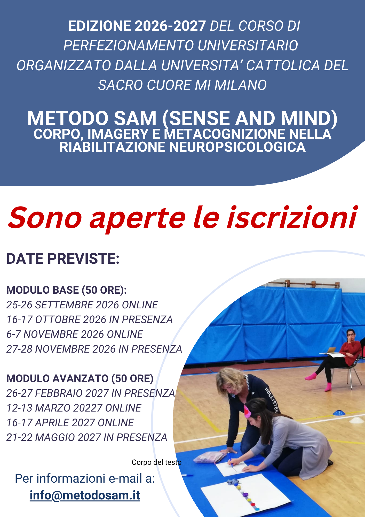 Per informazioni e-mail a: info@metodosam.it